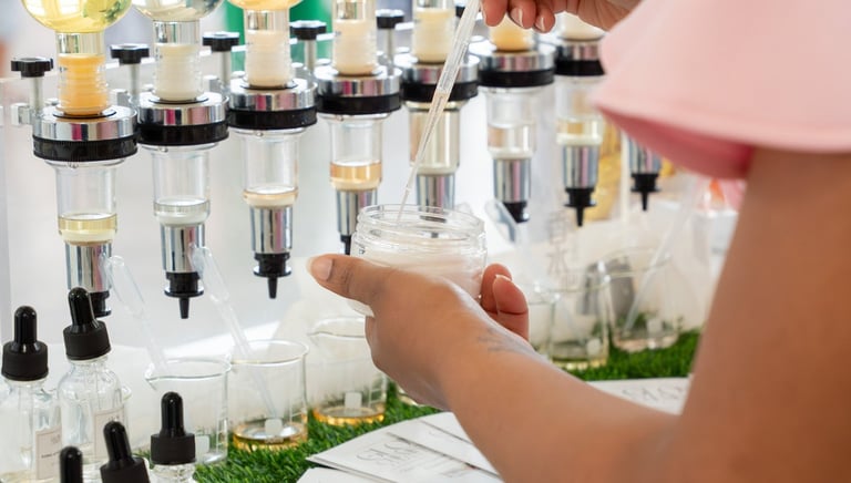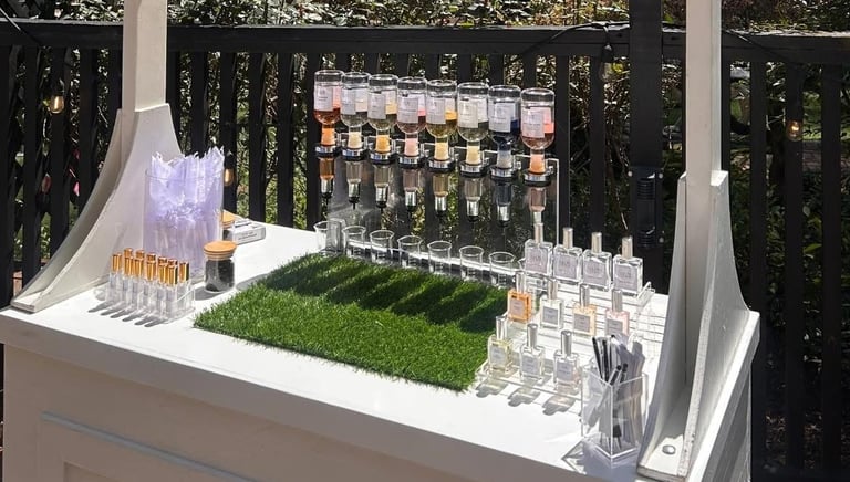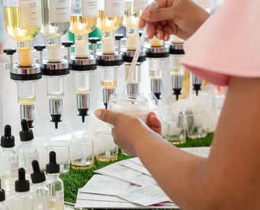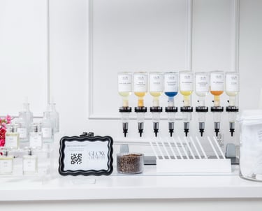 Our mission is to transform fragrance into an unforgettable, hands-on experience. We invite guests to explore a world of creativity at our mobile fragrance bar, mixing and matching premium scents under the guidance of our expert scent coordinators. Whether it's a bridal shower, corporate activation, birthday brunch, brand launch, or girls' night in, Glow Chemistry provides a luxurious and interactive way to celebrate life's special moments.