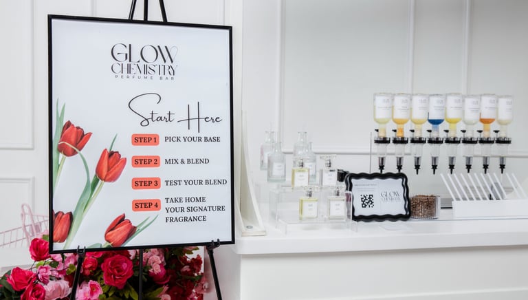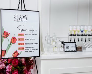 Glow Chemistry was born from a passion for luxury fragrances and a desire to create immersive, hands-on experiences that bring people together. What started as a personal exploration into the world of perfumery has blossomed into a thriving business that offers unique scent experiences for every occasion.